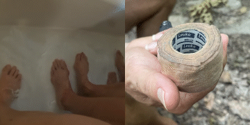 If you’re thinking about doing a big hike—do it. And if you pack nothing else, pack Leukotape and Speed Soak. Your feet will thank you. |