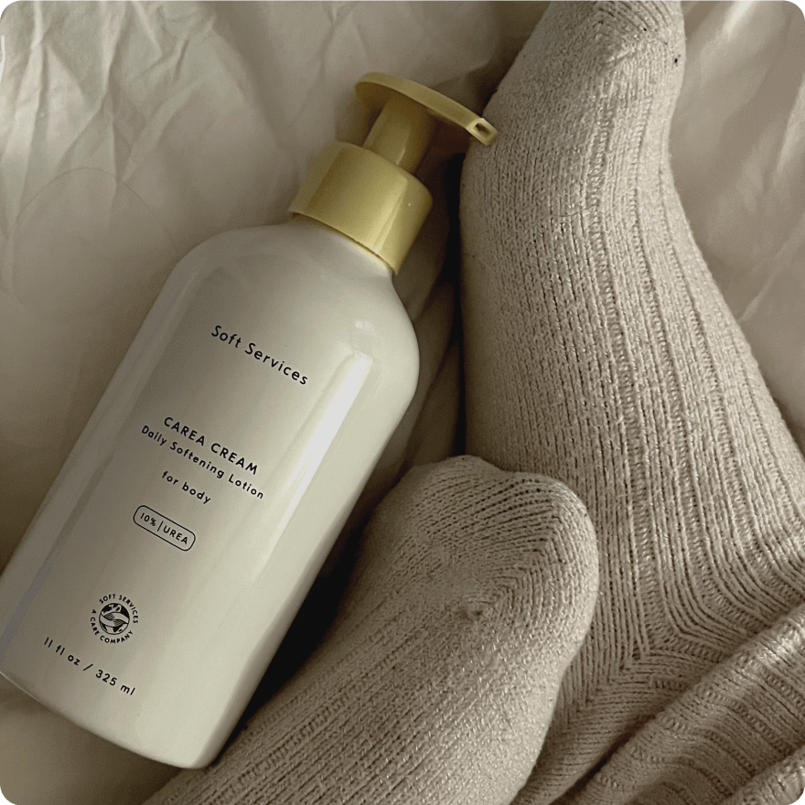 Treat, weekly. Just like you’d extend your facial skincare down to your neck and chest, your feet deserve the same kind of care. Bring your Soft Services routine all the way down: |